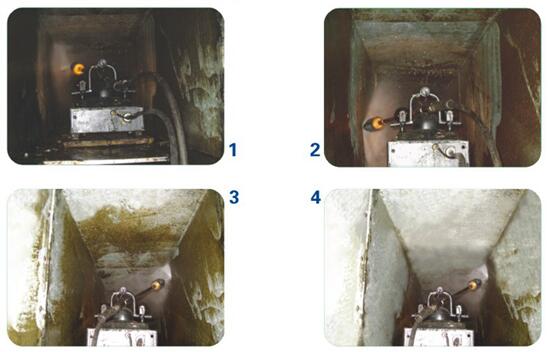煙道內(nèi)情況復(fù)雜,有些死角人力范圍無法達(dá)到,根本無法清洗